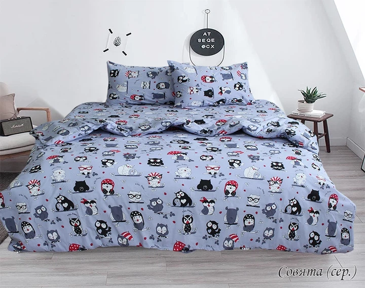 Комплект постільної білизни TAG Tekstil Совята сірий (2 наволочки)