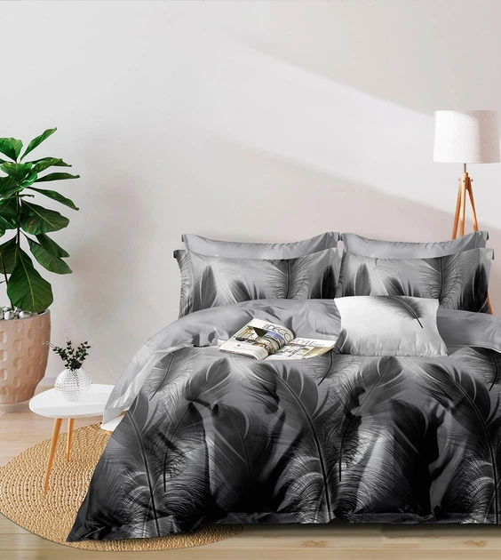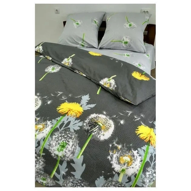 Комплект постільної білизни Бязь Голд з принтом Кульбаби, колір сірий Євро
