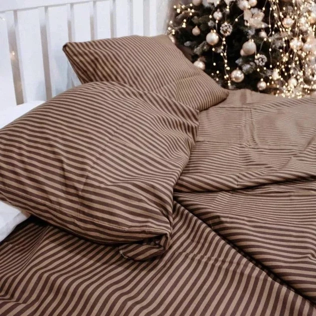Комплекти постільної білизни бязь Голд, постільна білизна Полоска коричнева Євро