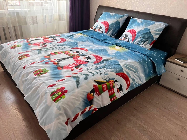 Комплект постільної білизни Двоспальний Новорічний Принт Пінгвіни 180х215 см Бязь Gold Lux