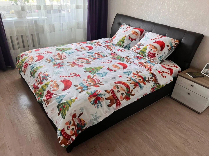Комплект постільної білизни Двоспальний Новорічний Принт 180х215 см Бязь Gold Lux