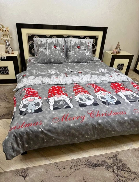 Комплект постільної білизни Двоспальний Новорічний Принт Гном 180х215 см Бязь Gold Lux