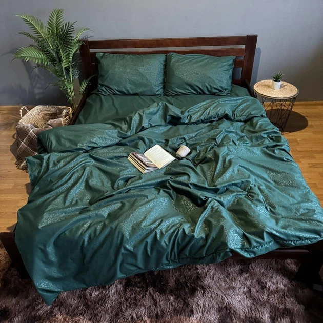 Комплект постільної білизни Гілочка однотонний полісатин двоспальний 180x220/50х70 см Смарагдова