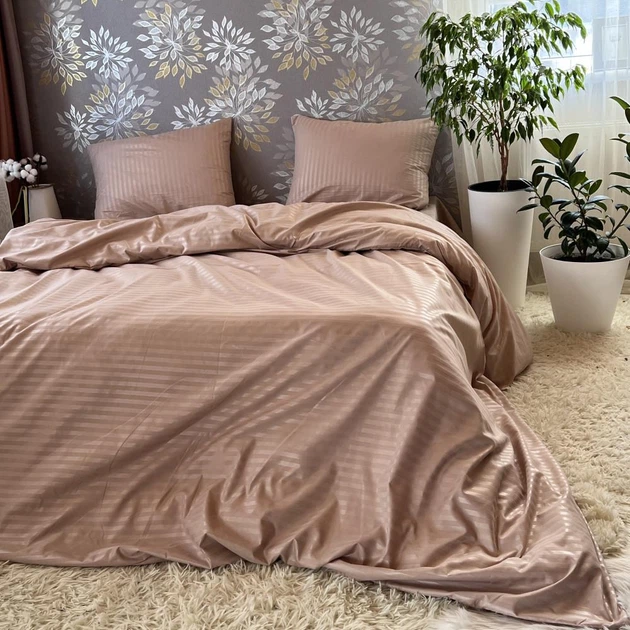 Постільна білизна бавовняна Смужка Півтораспальна 150 х 215 Страйп сатин мікрофібра 70 x 70 Капучино