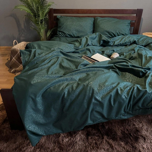 Комплект постільної білизни Гілочка однотонний полісатин двоспальний 180x220/70х70 см Смарагдова