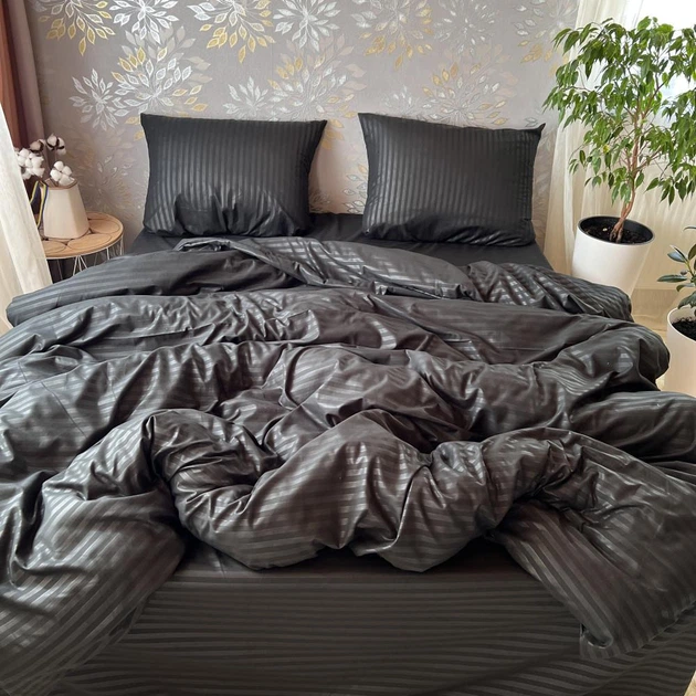 Постільна білизна бавовняна Смужка Півтораспальна 150 х 215 Страйп сатин мікрофібра 70 x 70 Чорна