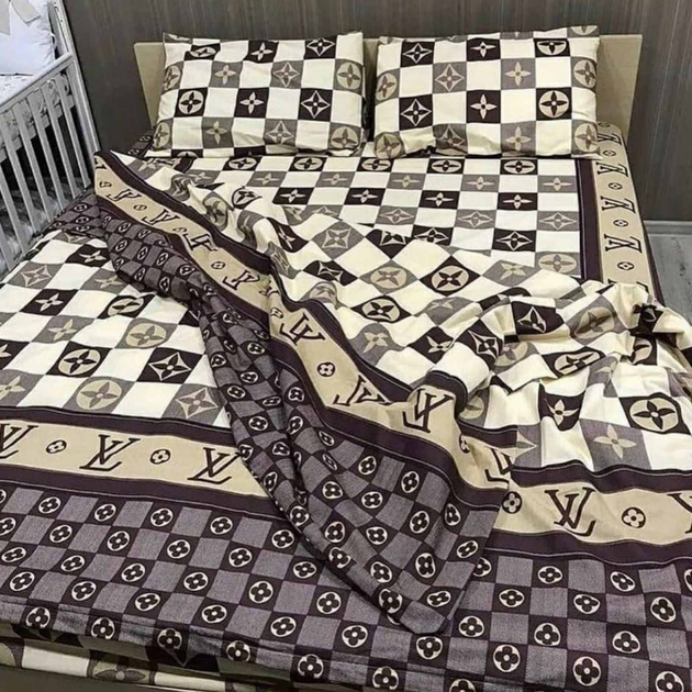 Комплект постільної білизни Sweet-Dream Луі Віттон клітинка 180 х 215 см двоспальний коричневий