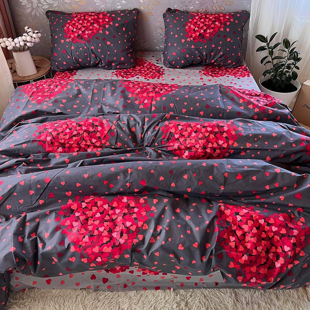 Комплект постільної білизни Sweet-Dream Валентинка 180 х 215 см двоспальний сірий