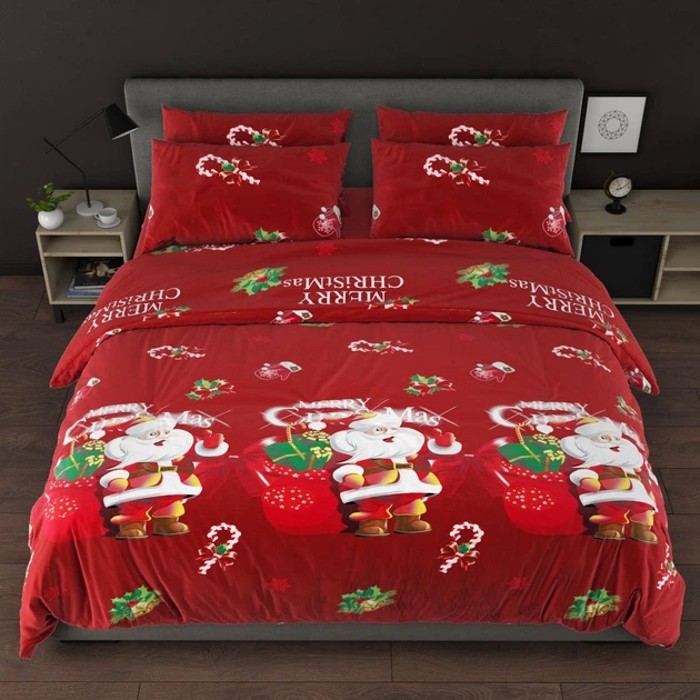 Комплект постільної білизни Королева Ночі Бязь 145х215 Полуторний Санта-Клаус з подарунками на червоному 1347-1