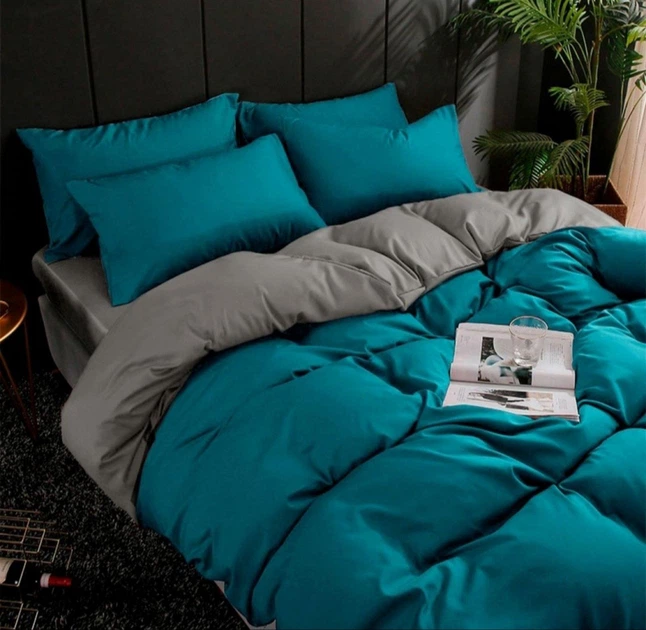 Комплект постільної білизни Двоспальний однотонний бязь голд люкс 180х220 см Зелений сірий