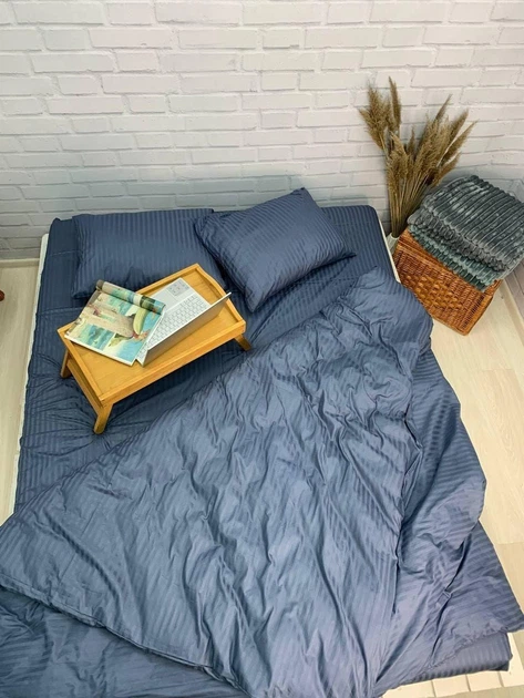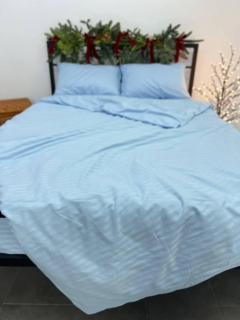 Простирадло на резинці 200х200х20 страйп-сатин блакитний