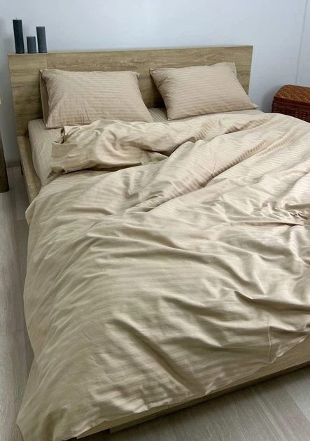Простирадло на резинці 200х200х20 страйп-сатин кава з молоком