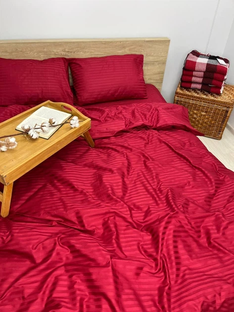Простирадло на резинці 200х200х20 страйп-сатин червоний