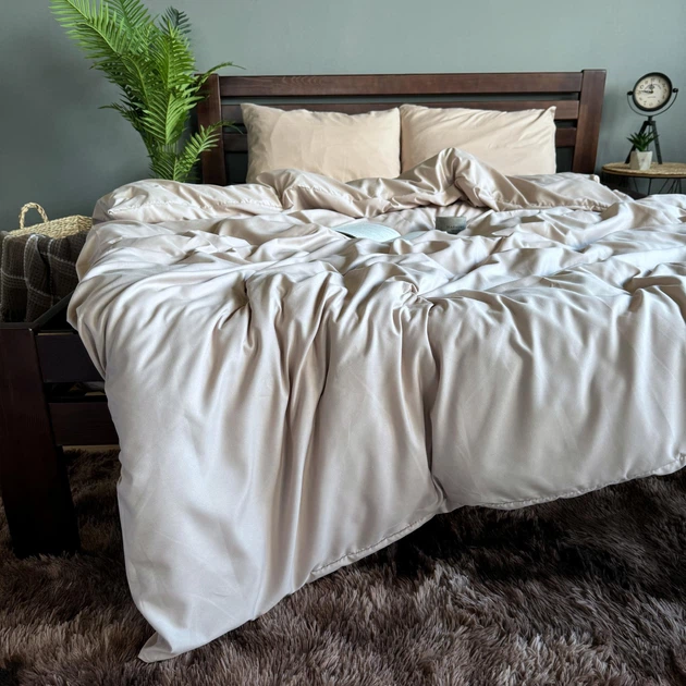 Постільна білизна бавовняна Однотонна Двоспальна 180 x 220 полісатин 70 x 70 Бежева