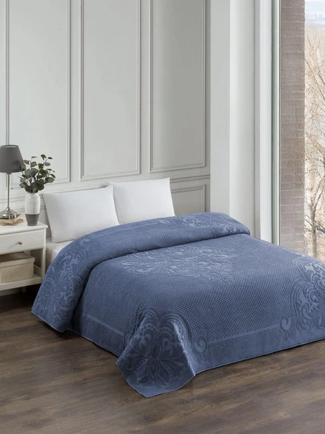 Махрове бавовняне жакардове простирадло Zeron 150х220 Полуторний Синій