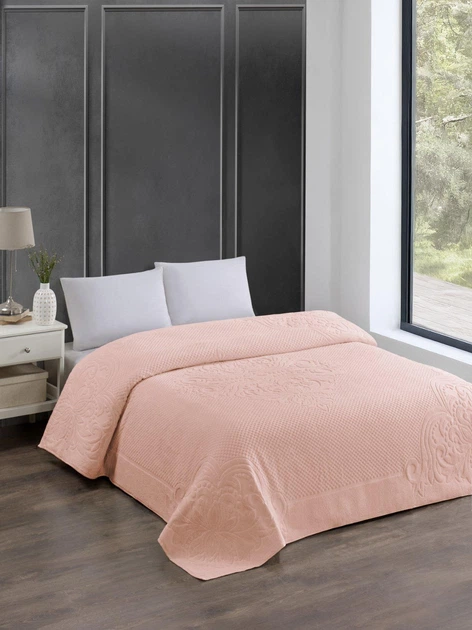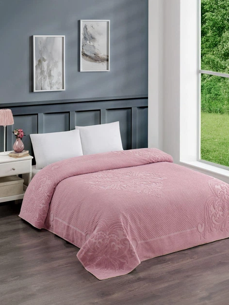 Махрове бавовняне жакардове простирадло Zeron 150х220 Полуторний Пудра