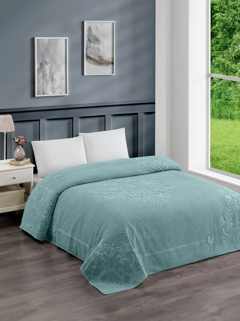Махрове бавовняне жакардове простирадло Zeron 150х220 Полуторний Бірюзовий