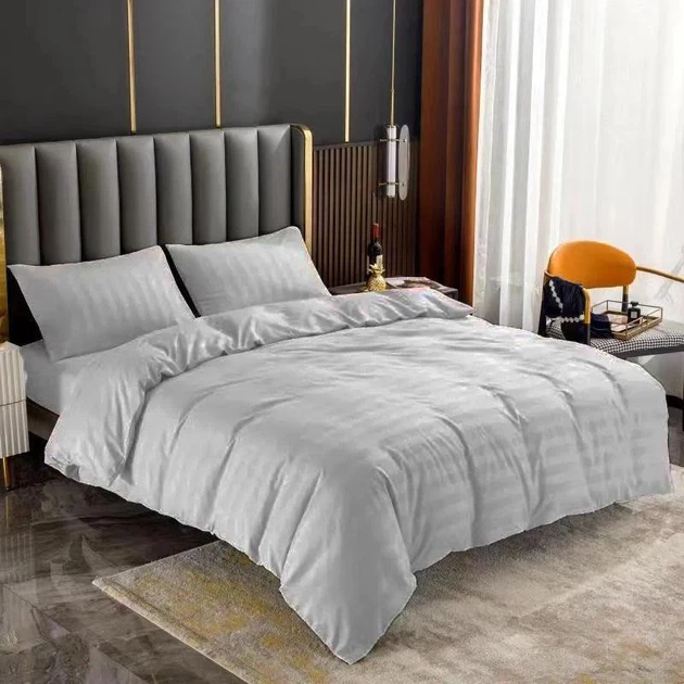 Однотонна постільна білизна Сатин Страйп ITALY Полуторний 150х210 Світло-сірий