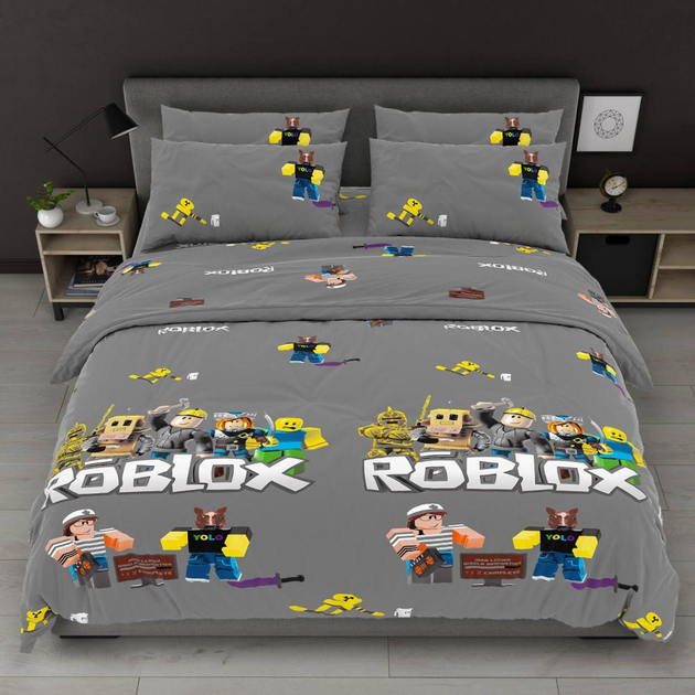 Постільна білизна бавовняна Роблокс Півтораспальна 150 x 220 Бязь Сіра 70 х 70