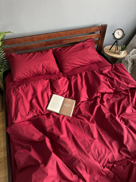 Постільна білизна бавовняна Однотонна Півтораспальна 150 x 220 Бязь Вишня 70 х 70