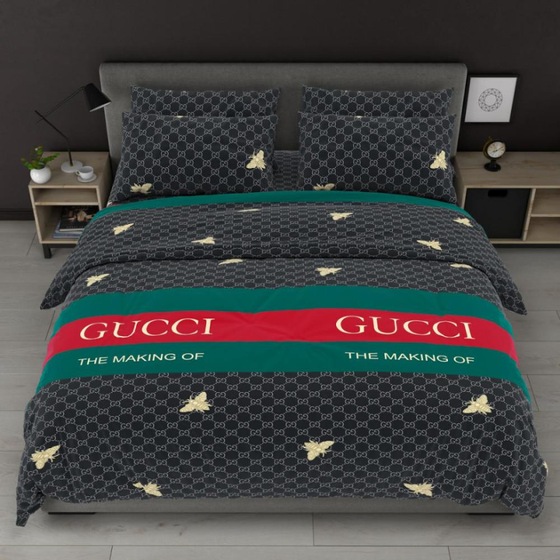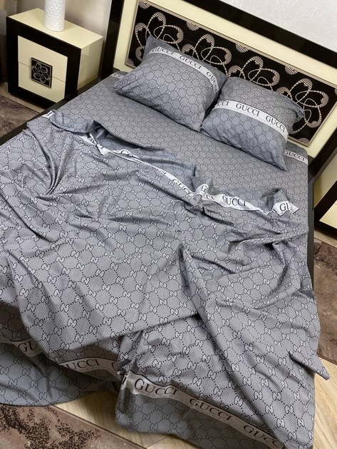 Постільна білизна бавовняна Gucci Півтораспальна 150 x 220 Бязь Сіра 50 х 70