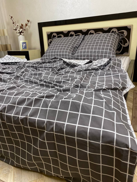 Постільна білизна бавовняна в Клітинку Півтораспальна 150 x 220 Бязь Біла з сірим 50 х 70