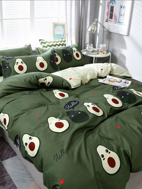 Комплект постільної білизни Бязь Голд, якісна постільна білизна з принтом Веселе авокадо Євро