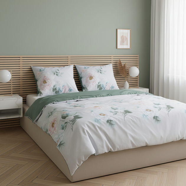 Євро комплект постільної білизни Мальва Бязь 200x220 (Н1059)