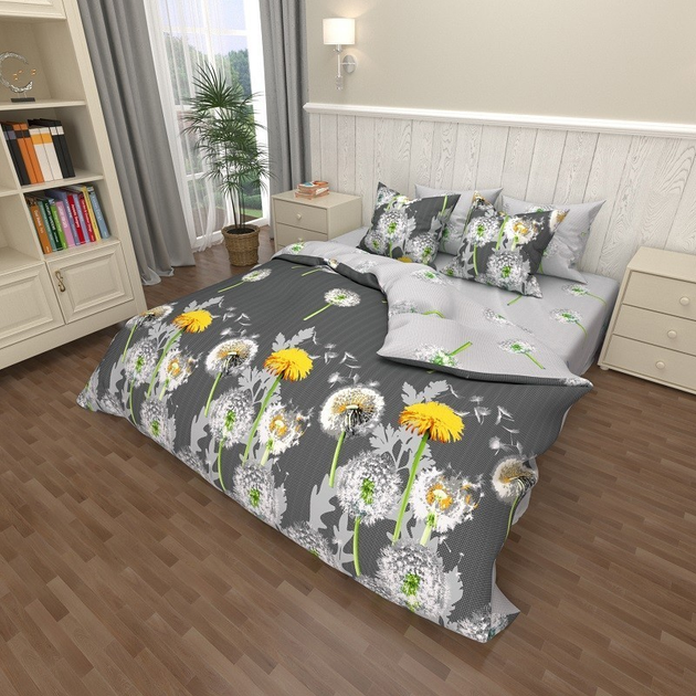 Комплект постільної білизни Королева Ночі Бязь 145х215 Полуторний Кульбабки на сірому 714