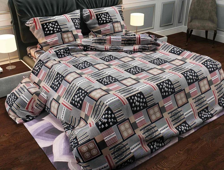 Комплект постільної білизни Королева Ночі Бязь 145х215 Полуторний Абстракція квадрати з корабликами 0110-1