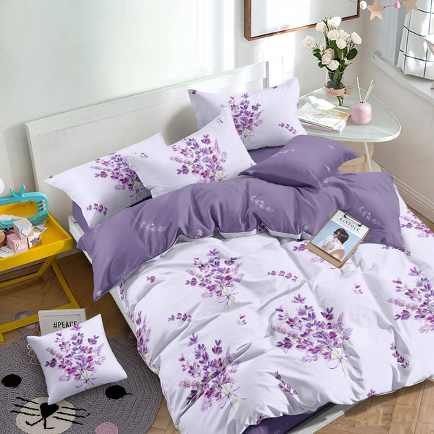 Комплект постільної білизни Королева Ночі Бязь 145х215 Полуторний Квіти, метелики на бузковому 0078-1