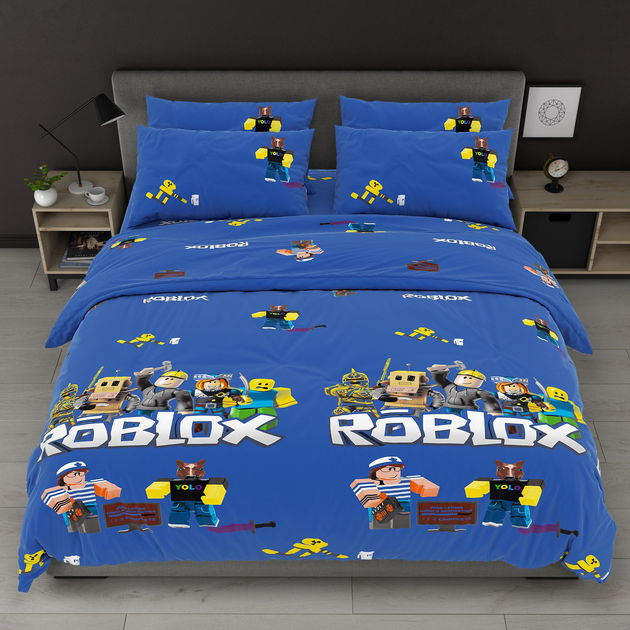 Комплект постільної білизни Королева Ночі Бязь 145х215 Полуторний Roblox на синьому 0386-1