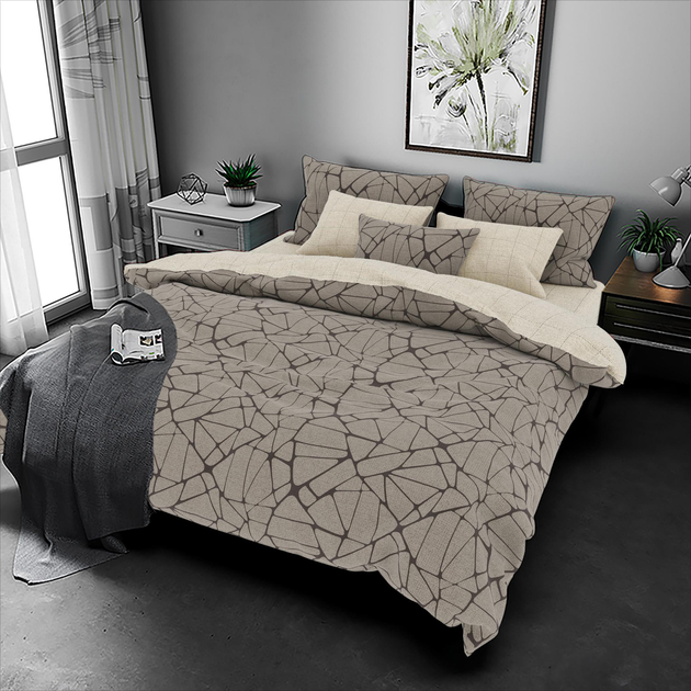 Комплект постільної білизни Королева Ночі Бязь 145х215 Полуторний Абстракція на бежевому 0505-1