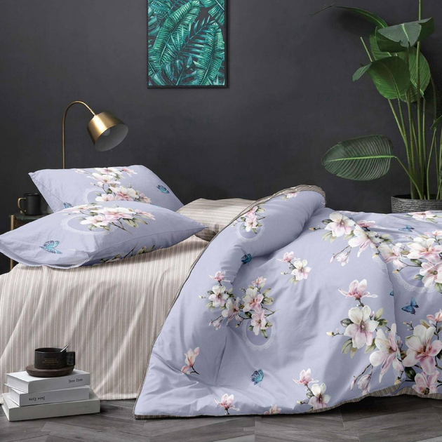 Комплект постільної білизни Королева Ночі Бязь 145х215 Полуторний Квіти з текстом на сірому 988-1