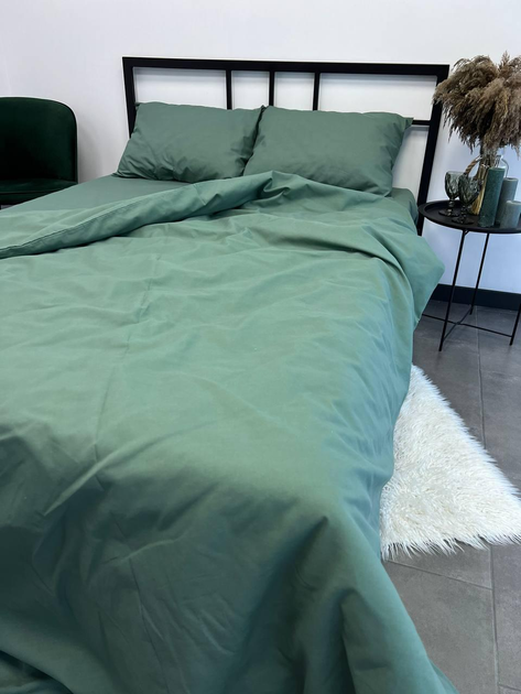 Комплект постільної білизни полуторний 150х210 Бязь Gold Luxe простирадло на резинці 80х200х20 наволочки 70х70 евкаліпт