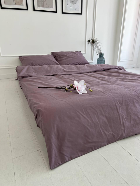 Комплект постільної білизни полуторний 150х210 Бязь Gold Luxe простирадло на резинці 80х200х20 наволочки 70х70 виноград