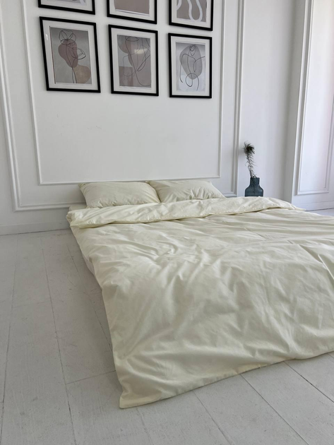 Комплект постільної білизни полуторний 150х210 Бязь Gold Luxe простирадло на резинці 80х200х20 наволочки 70х70 шампань
