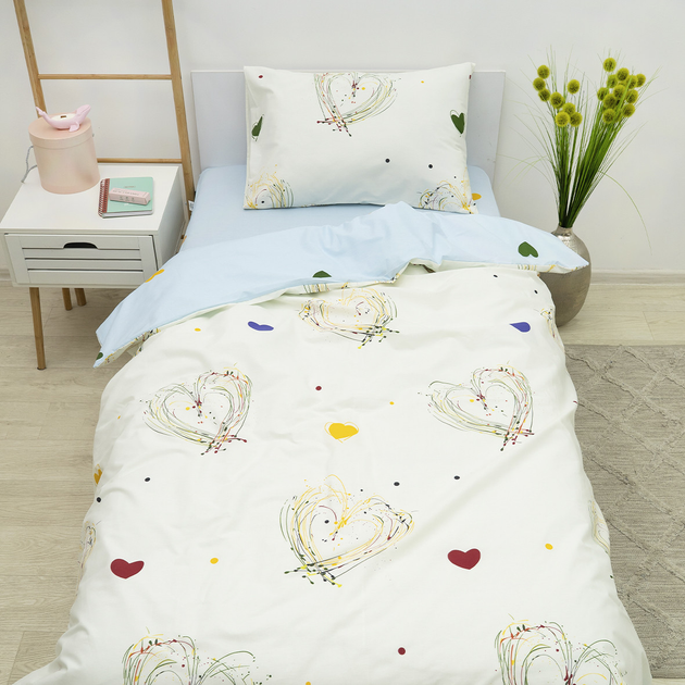 Комплект постільної білизни Односпальний дитячий ранфорс 140х210 см Сердця сердечка