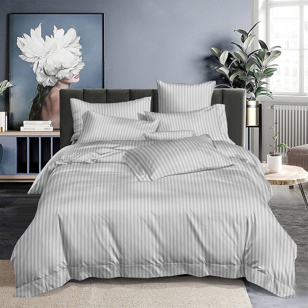 Постільна білизна страйп-сатин Півтораспальна Сіра 014504