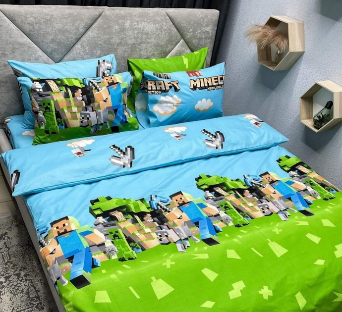Комплект постільної білизни Односпальний дитячий бязь голд люкс 140х210 см Майнкрафт синій