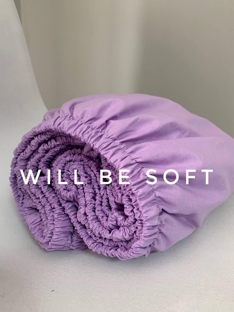 Простирадло на резинці 200 х 220 + 25 см 100 бавовна Лавандового кольору 2164