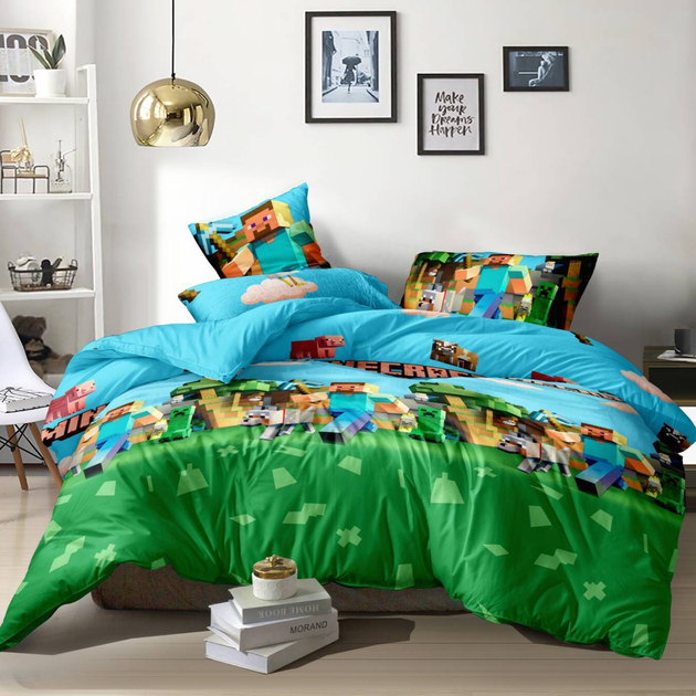 Комплект постільної білизни Королева Ночі Бязь 145х215 Полуторний Майнкрафт 832