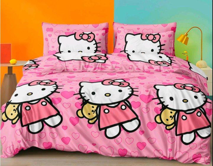 Комплект постільної білизни Односпальний дитячий бязь голд люкс 140х210 см Хелоу Кітті котики рожевий