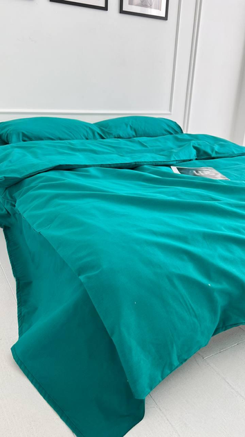 Комплект постільної білизни євро 200х220 Бязь Gold Luxe простирадло на резинці 200х200х20 наволочки 50х70 лазурний