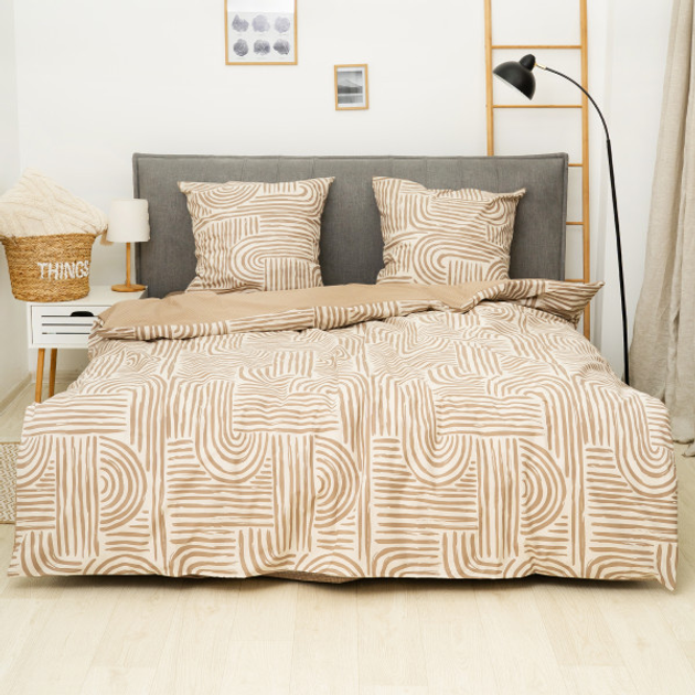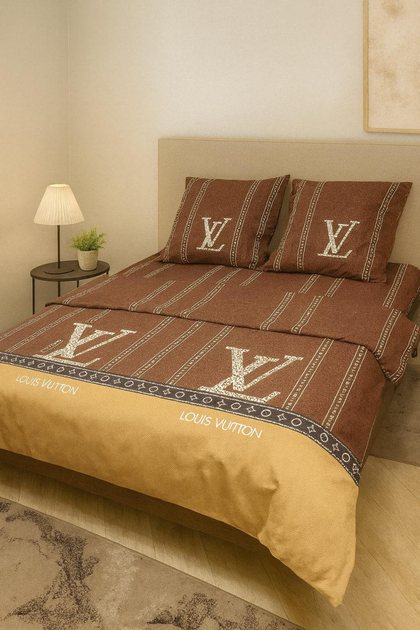 Комплект постільної білизни бавовняний "Louis Vuitton new" двоспальний, простирадло на гумці 16020020, бязь, коричневий, нав