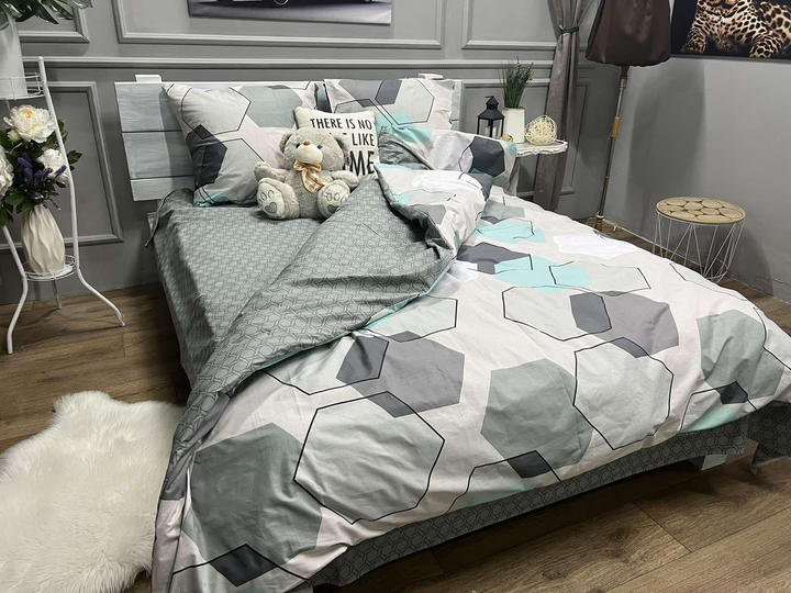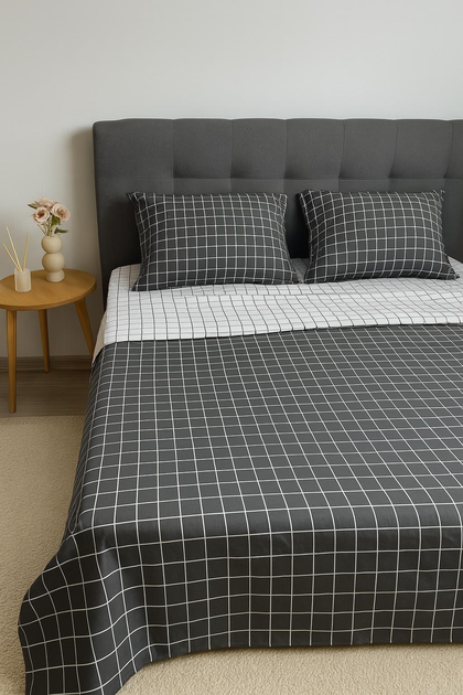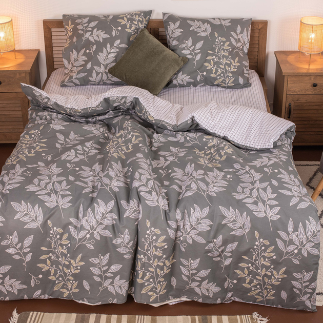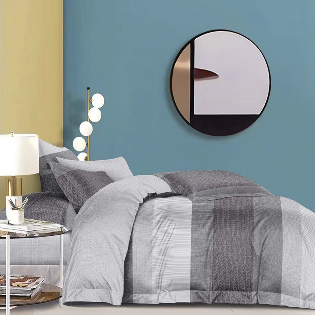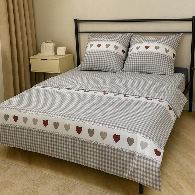 Комплект постільної білизни бавовняний "The mat is new" двоспальний, простирадло на гумці 18020020, бязь, сірий, наволочки 7