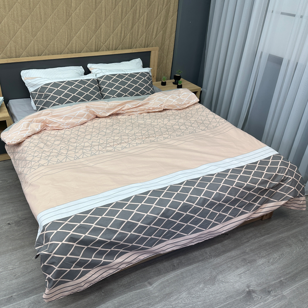 Комплект постільної білизни Ранфорс, Decorator Cotton Collection Skagen Євро 220х200 персиковий з сірим (88-124)