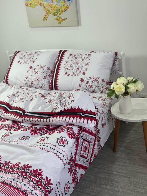 Комплект постільної білизни бавовняний "Vyshyvanka" двоспальний, простирадло на гумці 16020020, бязь, білий, наволочки 7070
