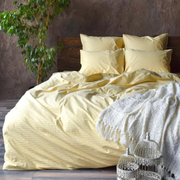 Постільна білизна бавовняна Візерунки Півтораспальна 150 х 215 Страйп сатин мікрофібра 70 x 70 Лимонний