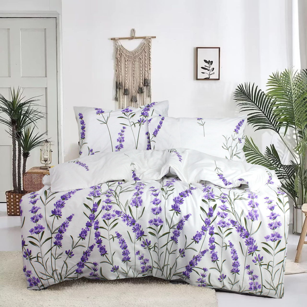 Постільна білизна бавовняна Візерунки Півтораспальна 150 х 215 Страйп сатин мікрофібра 50 x 70 Лавандовий